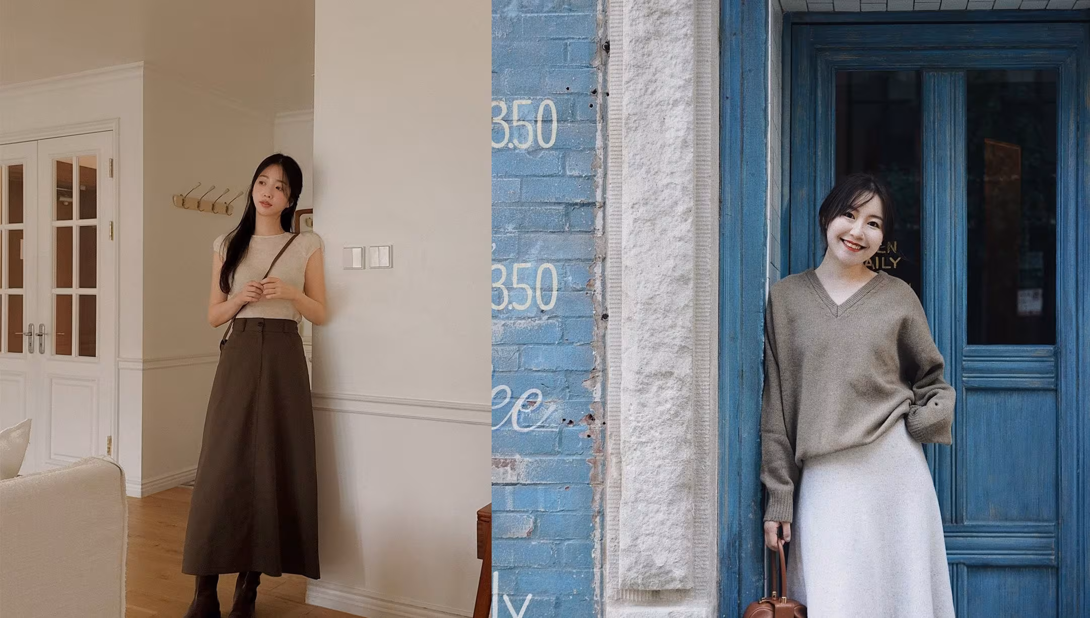 Áo len trơn là “cây cầu” giữa mùa thu và đông. Với chất liệu mềm mại và cổ tròn hoặc cổ lọ, áo len dễ dàng phối cùng chân váy dài hoặc midi. Màu trơn như đen, xám, nâu nhạt hoặc trắng mang lại sự đồng nhất, tinh gọn nhưng vẫn toát vẻ thanh lịch.