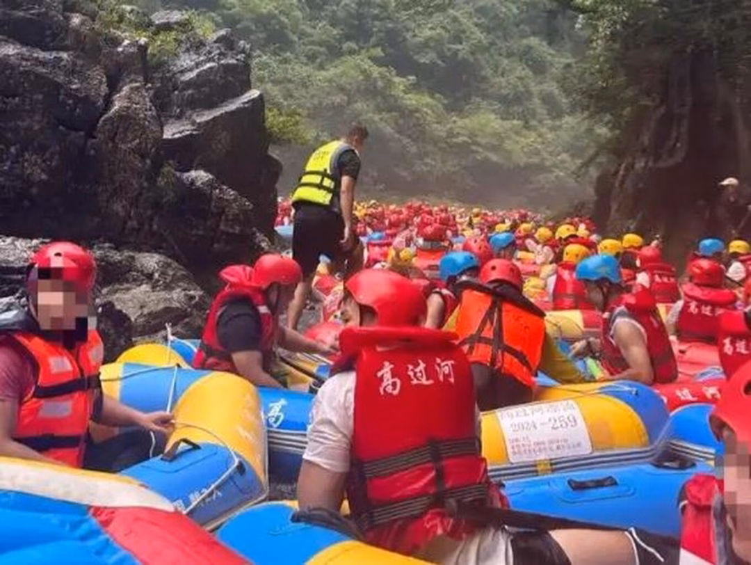 Trong mùa hè này, hàng nghìn du khách đã tụ tập tại khu thắng cảnh Cao Quả Hà ở tỉnh Quý Châu, Trung Quốc, để trải nghiệm chèo thuyền bơm hơi. Tuy nhiên, thay vì tận hưởng khung cảnh thiên nhiên tuyệt đẹp, họ đã gặp phải tình cảnh chen chúc và mắc kẹt trên sông.