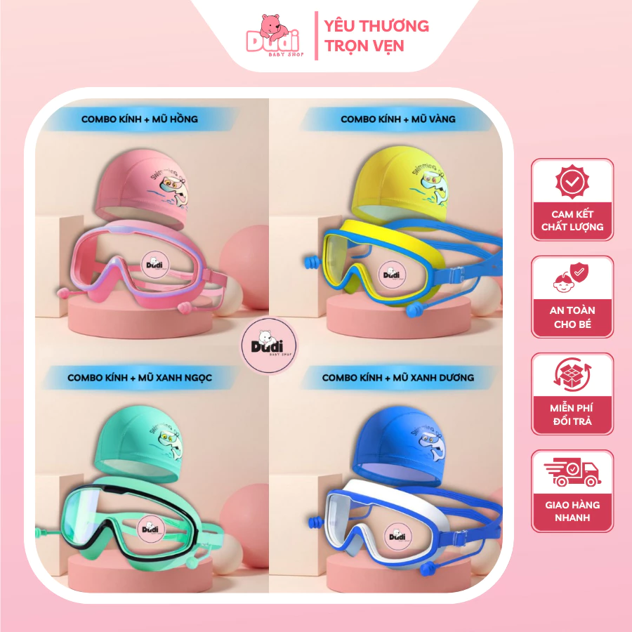 🔥 Kính Bơi Trẻ Em, Combo Kính Bơi + Mũ Bơi Cho Bé Silicon, Có Nút Bịt Tai, Chống Nước Vào Mắt, Chống Hấp Hơi Tốt. đang giảm giá!
